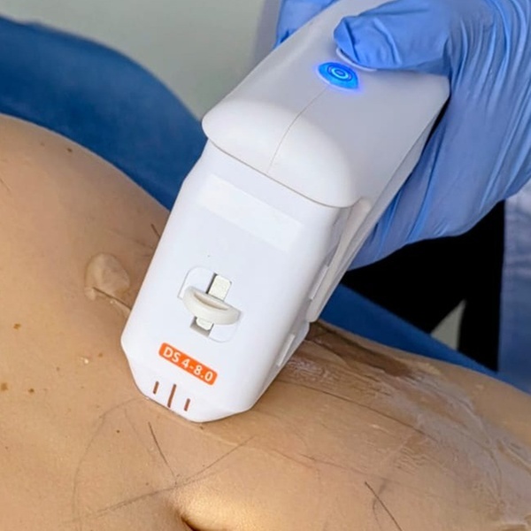 Step 4: Apply coupling gel — liberal layer of ultrasound gel to the treatment area to ensure good energy transmission.