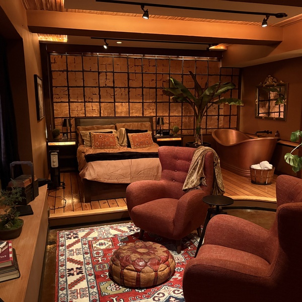 • Suites include soaking tubs, saunas, two-person showers, and cozy lounges.