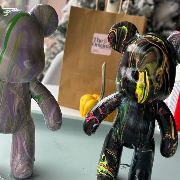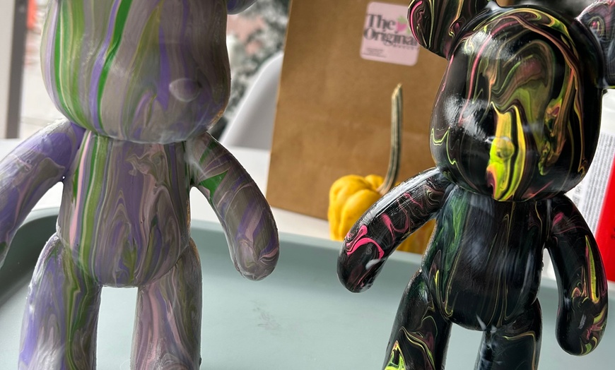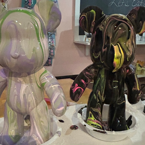 Come enjoy the newest paint trends happening around the world today! Pick three colors of paint to pour on these Kaws bears, or paint them how you like. Its a great fun way to be creative with friends or family.