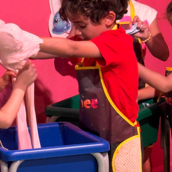 The structured slime workshop helps develop creativity, fine motor skills, and confidence. The sensory playground encourages exploration, movement, and physical play.