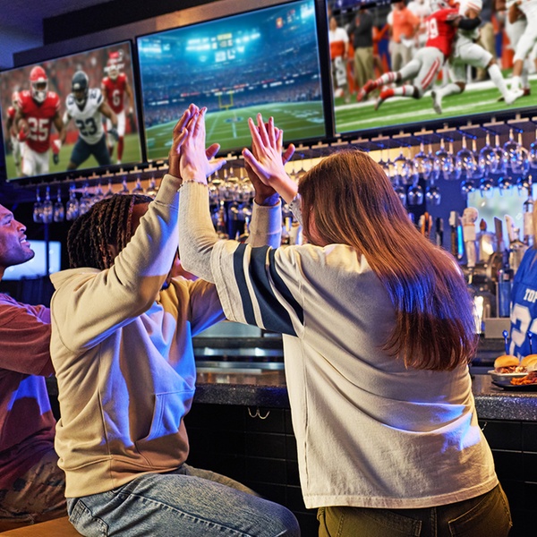 Three floors of entertainment with 90+ bays, rooftop fire pits, 200+ HDTVs & free Wi-Fi