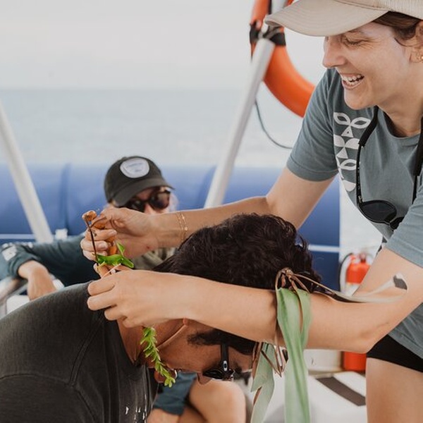 Hear, taste and touch elements of ancient Hawaiian history on this interactive cultural ocean wildlife tour! Our eco-rafts create a small group environment for learning and eye-level wildlife encounters. Enjoy whale watching or finding dolphins along with stories of history, sample a traditional food element, and take home a handmade leaf lei. The connection of ancient Hawaiian culture with the land and ocean are deep and we will share more about this connection with conservation and what you can do to take these practices home with you. Our small group tours make for a fun, family style experience, ideal for interactive learning and ocean wildlife encounters. See whales and dolphins eye-level on our low-to-water adventure eco-raft vessels. Native Hawaiian owned and voted TripAdvisors Traveler's Choice, we've been Maui’s original ocean rafting experience for more than 30 years. Mahalo for supporting us, Maui's local native Hawaiian-owned eco-tours.