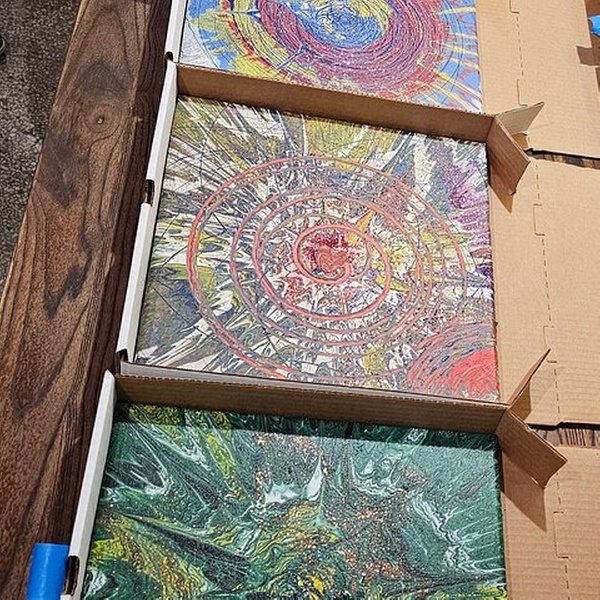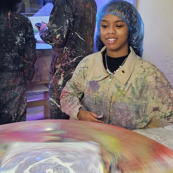 - Instructor-led intro with guidance on pouring techniques and spin art tips.
