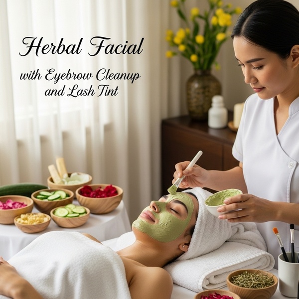 💆♀️ What We Offer: 🌿 Herbal Facial + Brow Cleanup + Lash Tint